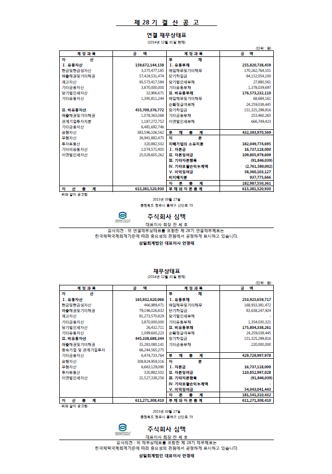 2014년 결산 공고