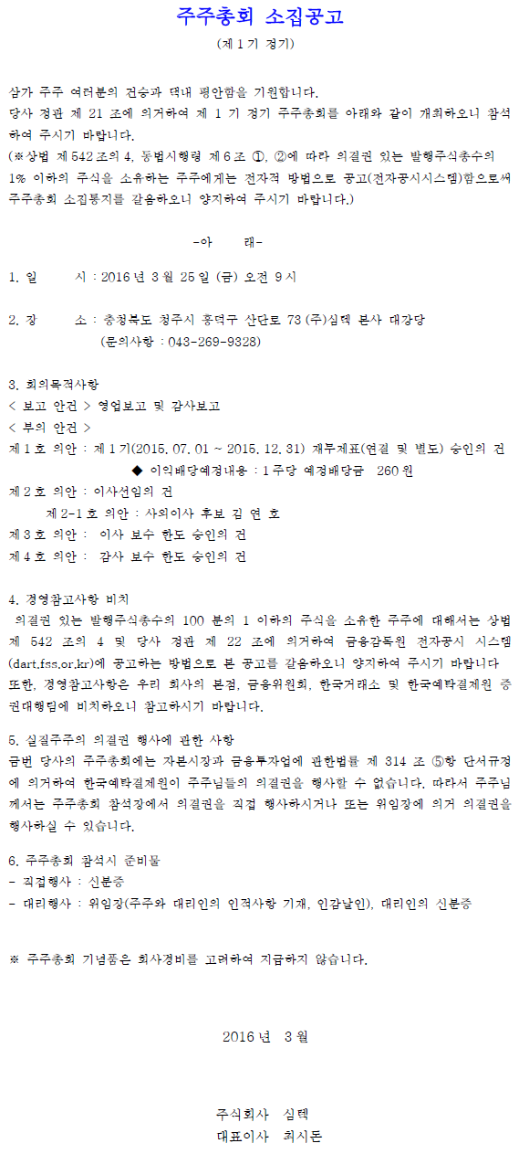 제1기 정기 주주총회 소집 공고
